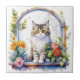Sweet Whimsical Cat in Window of Flowers Ceramic Tile