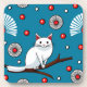 Cute white cat on the blue backround with red and white ornaments.. Ideal for Birthday, Christmas gift or home decor. For kids and adults of all ages.