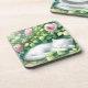 Sweet White Kitten Napping under a Rose Bush Coaster