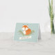 A lovely little baby fox is nestled all snug on a bed of leaves and branches in this sweet illustration set against a soft teal background.