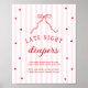 Celebrate the arrival of a little sweetheart with this adorable Valentine's-themed baby shower 'Late Night Diapers' - table sign poster. Featuring elegant pink stripes, cute red hearts and a bow, this design perfectly combines charm and sophistication.