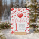 Sweetheart Table Number Card featuring charming red watercolor hearts and bows. Perfect for organizing guest seating at a baby shower, first birthday, or sweetheart-themed celebration. This printable table sign adds a cohesive and adorable touch to your party décor and matches the full Sweetheart collection. Customize table numbers and guest names easily.