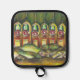 I ordered this product for my Mom as a gift and to check the product quality. It is a good thickness and great quality I am happy to report. She also advised that it will do a wonderful job in protecting her counters from hot pots and will last a really long time- durable. Printing is as expected and color is exactly her color of orange.