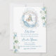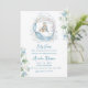 Gather your loved ones to celebrate a "sweet little goose on the loose" with this enchanting Silly Goose Baby Shower Invitation. This design features a precious watercolor gosling dressed in a soft blue pajama set and matching nightcap, quietly reading a book with a tiny bunny friend. The scene is nestled within a delicate floral wreath of dusty blue blooms and golden wildflowers, elegantly draped with a flowing cream ribbon and a voluminous blue polka-dot bow.