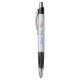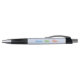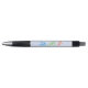 This pen has three triathlon pictograms in blue, green and orange, with accompanying text "Swim Bike Run" in the same colours. There is also the opportunity for you to add a name or initials or other short caption. The body of the pen has a pale blue background, and the editable text is in blue to match the swim icon.