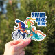 Show off your passion for triathlon with this Swim Bike Run vinyl sticker, designed for athletes, fitness enthusiasts, and endurance sports lovers. Featuring a bold and dynamic illustration of a swimmer, cyclist, and runner, along with the motivational text "Swim. Bike. Run.", this sticker is perfect for decorating your laptop, water bottle, car, helmet, bike, or any smooth surface.