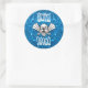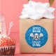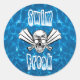Swim freak 3 inch round sticker, with a deep blue pool water background. Skull, fins goggles done in white with a black boarder. Swim freak font done in whit also with a black boarder.