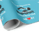 A special gift for a keen swimmer will be even more special with this bright blue wrapping paper, designed especially for swimmers. The design uses the inspirational text "When your lungs are bursting and your legs can swim no further SWIM WITH YOUR HEART", in white with a red heart. In the background there is the pictogram of a swimmer.