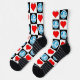 Fun high performance athletic crew socks for swimmers, swim teams, coaches and fans, with a seamless black and white chequered pattern of bright red hearts on the white squares, and on the black squares a cool swim icon filled in with cool blue pool water in the background. These are perfect for swimmers to wear to swim practice and swim meets, or any time during the swimming season. Great for swim coaches and fans as well!