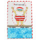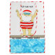 Creative swimming holiday gift bag featuring funny cartoon Santa Claus swimmer. To personalise edit text to add his or her name.