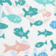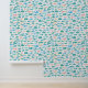 This cute seamless wallpaper design has a repeating pattern of fish swimming in shades of blue, green, and salmon pink on a light coral-reef background. It's perfect for conjuring up some beach vibes.