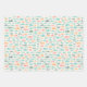 This cute seamless pattern wrapping paper set has a nautical theme with swimming fish in an abstract, cut-out modern style. The sea of fish on sheet 1 are in shades of teal, pink, blue, and sunny yellow-orange on a sandy beige background. They also have a spotted, textured look. The fish on sheet 2 are in shades of teal, blue, pink and orange on white with a light coral pattern behind them. Sheet 3 is textured with a navy blue background and fish in shades of lavender, light blue, orange, and yellow. Conjure up beach vibes with this fun "under the sea" design.