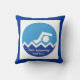 Swimming gifts, swimmer on a blue circle custom gift design featuring a minimalist white icon of a swimmer on a two tone blue circle-sea and sky and a blue border. This cool design is a template and it is completely customisable. Personalise it and change text with monogram, name or your message. The perfect gift ideas for the fanatic swimmer and the swim lover.