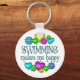 Share your love for swimming and the happiness it gives you with this colourful design with hearts, flowers and the words - Swimming makes me happy. Nice gift for a swimmer.