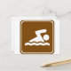 International style road and highway sign advising of recreational facilities, specifically: swimming.