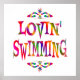 If you love to swim, you'll enjoy this colourful design with flourishes and the words Lovin' Swimming. Great for a swimmer.