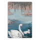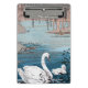 This mini clipboard has a vintage image of a beautiful white mother swan swimming in a blue lake with her white baby swan.