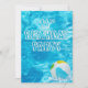 Swimming pool 11th birthday party invite with beach ball splash in turquoise water.