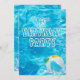 Swimming pool 13th birthday party invite with beach ball splash in turquoise water.