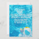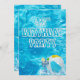Swimming pool 40th birthday party invite with cocktail and beach ball splash in turquoise water.