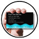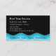Swimming pool service business cards with modern design that includes a blue wavy line representing water, text style and layout you can customise on both sides, and a design that's useful for a swimming pool maintenance, installation, repairs or spas.