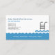 A simple business card for pool cleaning and services (repair, maintenance, construction, openings and closes, equipments, swimming instructor and more). It comes with full contact, list of services and website address on the back, all in blue and white colours!