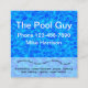 Cool pool service business card template on square format card stock with a swimming pool water background and simple layout with industry content you can customise online. Designed for a company that installs, maintains, or services swimming pools.