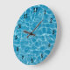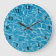 Blue themed clock with background of water from a swimming pool with light reflections