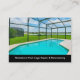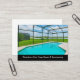 Swimming pool rescreening and maintenance business cards designed with a graphic of a pool cage enclosure and simple layout that can be edited online.