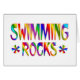 If you like to swim, share your love with this colourful design with the words Swimming Rocks. Great gift for a swimmer.