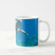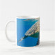 Underwater photograph of a sea turtle swimming in crystal clear water just below the surface.