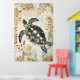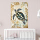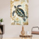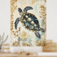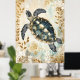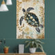 swimming sea turtle surrounded by floral patterns. poster