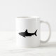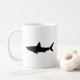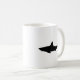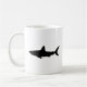 The silhouette of a swimming shark in black and white designs. You can change the background colour.
