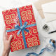 Gold swirl pattern on red background asian style wrapping paper