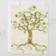 The artwork for this elegant, formal yet somewhat rustic daughter's bat mitzvah invitation invite is hand water coloured by Audrey Jeanne Roberts. The background is an aged vintage style parchment, lighter on one side and in deeper tan tones on the reverse. The swirl tree has a heart in the centre of its trunk, its branches are swirls and at the end of each branch is a set of green leaves.