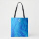 Swirled Blue Light Abstract Pattern Monogram Tote Bag