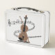 Swirled Music Staff and Violin Drawing | Initials Metal Lunch Box