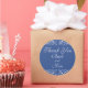 This is the coordinating Thank You Sticker for the Blue Swirls wedding line. It is the perfect size for thank you favours. It can easily be made smaller for thank you card envelope seals. Let me know if I can help with that.