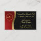This business card features a modern red, gold, and black swirl design. You can put the initial of your business inside the wreath on the left and on the right, you can record the contact details for your business or employee. All text on the front of the card is editable so go ahead and change the style, size and placement of the font and make it your own!