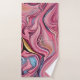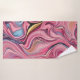 Swirls and Waves pink, gold, black, and blue bath towels.