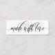 Charming slim product insert card with a swirly black calligraphy script saying "made with love". Add your business name, name, and website on the back.