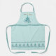 This festive apron with an original digital painting by Leslie Sigal Javorek of a swirly turquoise Christmas tree w/ violet ornaments on a Trompe L'oeil (trick of the eye) background illusion of fine bone china & greater depth.