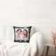 Swirly Custom Photo Mother's Day Pillow. Swirly grey frame with black background. Black and white elegant border design. Features a custom photo to the front and back, great as a gift or for sharing family snapshots!