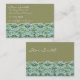 Rielaboration of Vintage Pattern Sage Green Paisley and Floral Lace Custom Business Cards- You choose card colour and font colour - Have fun choosing your custom colours to make a one of a kind card!