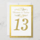 An elegant and classy 5x7 table card featuring faux gold foil flourishes on a white background, outlined with a classic golden border. Click the CUSTOMIZE IT button to add your text and table numbers. Comes in 5 colours. Matching invitations, RSVPs, cocktail napkins & more available. For questions or requests for other items featuring this design, please contact: cheryl@cheryldanielsart.com. "Swirly Flourish with Frame" by Cheryl Daniels © 2015.