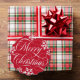 Beautiful Merry Christmas ornament card in red with white snowflakes, a swirly script, and on the other side a photo of your family along with your last name and the year.