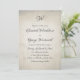 A vintage wedding invitation with gorgeous calligraphy printed to look weathered with foxed edges and faint stains.
