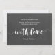 Thank you card featuring a pretty hand-lettered font in white atop your photo of choice. The back features a chalkboard background with matching fonts.