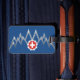 An illustration of the Swiss alps with a stylised Swiss flag in the middle.