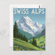 Capture the beauty of the European mountains with this vintage-style travel poster postcard. Featuring a stunning illustration of the majestic Swiss Alps, snow-capped peaks, lush green valleys, and a charming little chalet, this design evokes the golden age of travel. Perfect for sending a thoughtful message, adding to a travel-themed collection, or framing as a piece of rustic, wanderlust-inspired wall art. Ideal for lovers of skiing, hiking, nature, Europe, and retro tourism art.